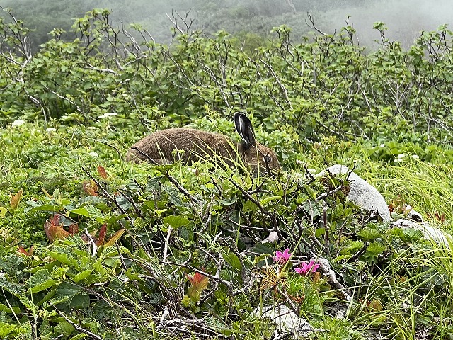 他に花を食べてるエゾユキウサギ発見。拡大してみると?目は赤くないんだね。口もぐもぐさせて可愛らしいわ~~