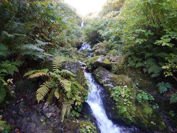始めての長時間の沢登りでした。先頭を行く私は、途中、10mの滝で、高巻きするときは、登ったはいいものの、板状節理の上に乗…