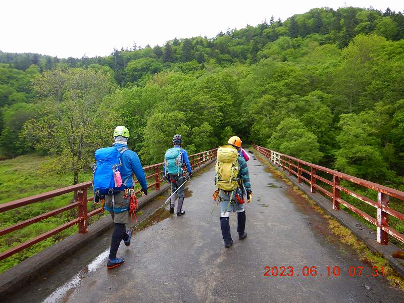 今回は、新会員のメンバー1人を迎えて札幌近郊の沢へ。 天候曇り時々霧雨、気温&湿度は高め。 豊平峡大橋は、塗装塗替の工事中…